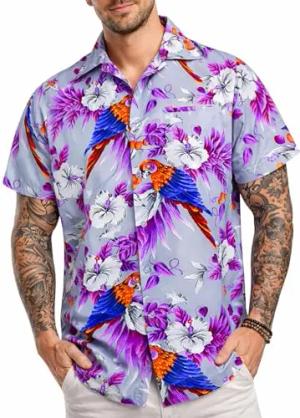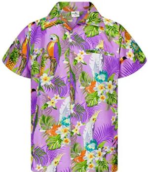 Funky Hawaii-Hemd, Herren, Kurzarm, Parrot-Cockatoo, Violett, L