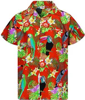 Funky Hawaii-Hemd, Herren, Kurzarm, Parrot-Cockatoo, Orange, L