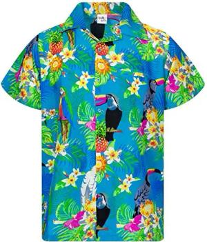 Funky Hawaii-Hemd, Herren, Kurzarm, Parrot-Cockatoo, Türkis, XS