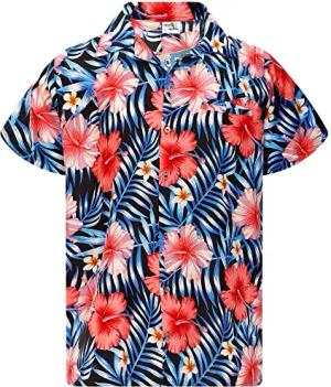 Funky Hawaii-Hemd, Herren, Kurzarm, Tropical-Hibiscus, Schwarz-Blau, XS