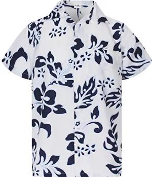 Funky-Hawaii-Hemd, Kurzarm, Hibiscus, Weiß-Navy, S
