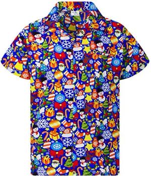 Funky-Hawaii-Hemd, Weihnachten, Herren, Kurzarm, Christmas-Island, Multi-Blau, S