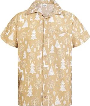 Funky-Hawaii-Hemd, Weihnachten, Herren, Kurzarm, Christmas-Reindeer-Allover, Khaki, XL