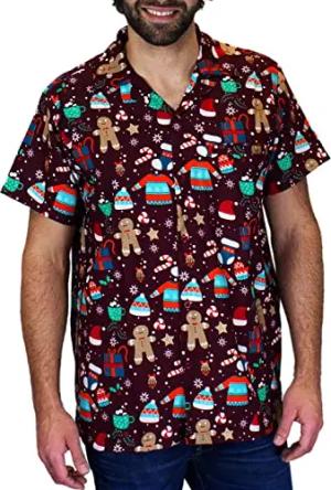 Funky-Hawaii-Hemd, Weihnachten, Herren, Kurzarm, Ginger-Bread, Rot, M