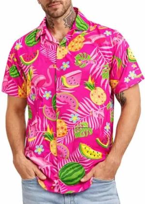 Herren Hawaiihemd Kurzarm, Flamingo Melon, Pink, L