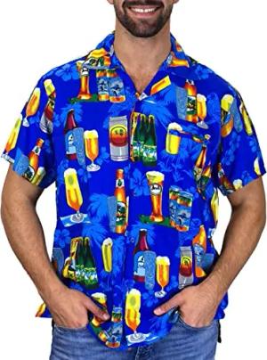 Funky Hawaii-Hemd, Herren, Kurzarm, Beerbottle, Blau, S