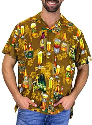 Funky Hawaii-Hemd, Herren, Kurzarm, Beerbottle, Braun, L