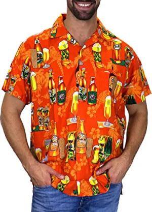 Funky Hawaii-Hemd, Herren, Kurzarm, Beerbottle, Orange, S