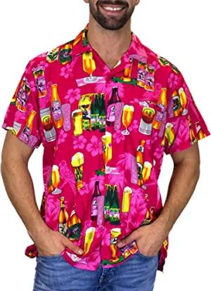 Funky Hawaii-Hemd, Herren, Kurzarm, Beerbottle, Pink, S