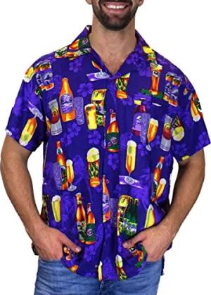 Funky Hawaii-Hemd, Herren, Kurzarm, Beerbottle, Violett, M
