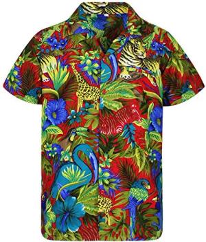 Funky Hawaii-Hemd, Herren, Kurzarm, Jungle, Rot, XL