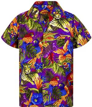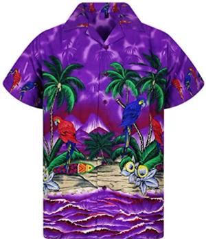 Funky Hawaii-Hemd, Herren, Kurzarm, Parrot, Violett, M