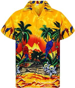 Funky Hawaii-Hemd, Herren, Kurzarm, Parrot, Gelb, XS