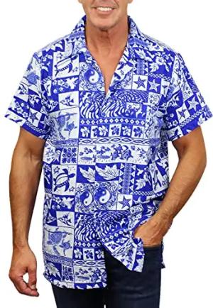 Funky Hawaii-Hemd, Herren, Kurzarm, Parrot, Blau, S