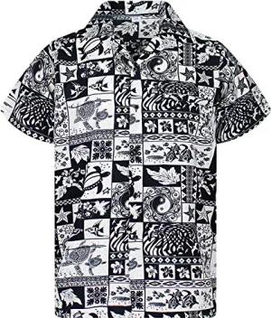 Funky Hawaii-Hemd, Herren, Kurzarm, Jungle, Schwarz, S