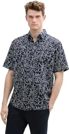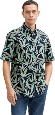 Comfort Fit Hemd mit Palmen-Print, Navy Multi Leaf Design, XXL