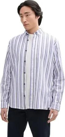 Herren Regular Fit Hemd mit Logo-Stickerei an der Brusttasche, 35961 - White Navy Stripe, M