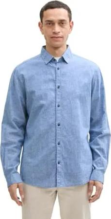 Regular Fit Hemd mit Leinenanteil, Sapphire Blue Chambray, L