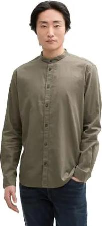Regular Fit Hemd mit Leinenanteil, Smokey Olive Green, L