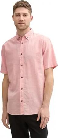 Regular Fit Kurzarmhemd mit Leinenanteil, Hazy Coral Rose Chambray, XS