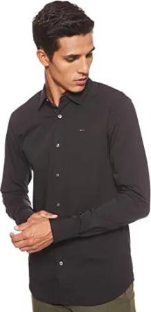 Herren Tjm Original Stretch Shirt Dm0dm04405 Langarmhemden Gewebte Oberteile, Schwarz (Tommy Black), S EU
