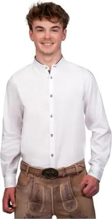 Trachtenhemd für Lederhosen mit Verzierung weiß, Hemdgröße: XL