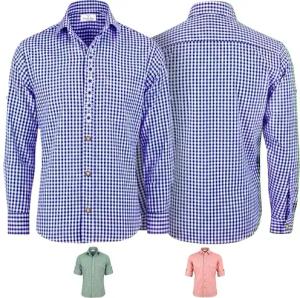Herren Hemd Trachtenhemd Karohemd Langarm Kurzarm Kariert Wiesn Hemd Oktoberfest Freizeithemd Trachten Blau