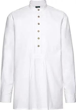OS Trachten Herren Hemd Langarm Trachtenhemd mit Stehkragen Phexe, Größe:41/42, Farbe:weiß