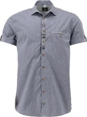 OS Trachten Herren Hemd Kurzarm Trachtenhemd mit Haifischkragen Bleri, Größe:39/40, Farbe:Marine