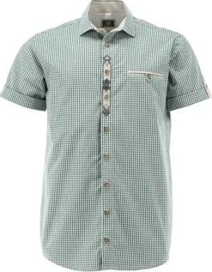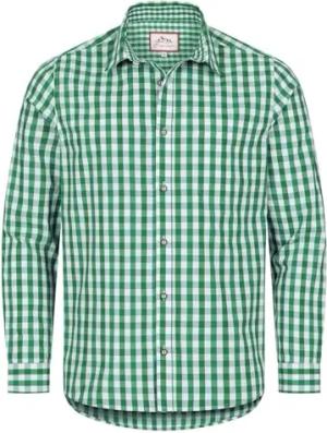 Trachten Herren Hemd Simon mit roten oder grünen Details Gr. S-5XL (DE/NL/SE/PL, Alphanumerisch, M, Regular, Regular, grün)