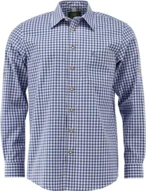 Trachtenhemd Herren, Hemd Herren für Oktoberfest, Langarmhemd kariert + Uni, Trachtenhemden für Herren, Blau, Gr. 39/40