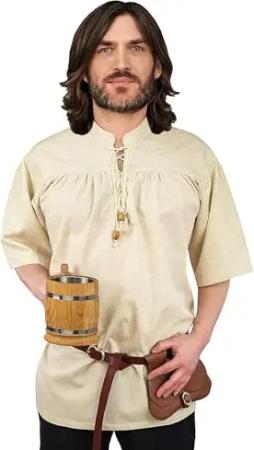 Mittelalter Hemd Julius mit Ärmelschnürung - Mittelalter Kleidung, Mittelalter Hemd Herren, LARP-Kleidung, Festival Outfit, Karneval Kostüm, Freizeithemden Langarm Natur S