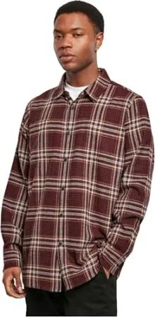 Herren Checked Flanell Shirt TB297, Mehrfarbig (Blk/Burgundy), XL EU
