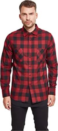 Checked Flanell Shirt Männer Flanellhemd schwarz/Burgund S