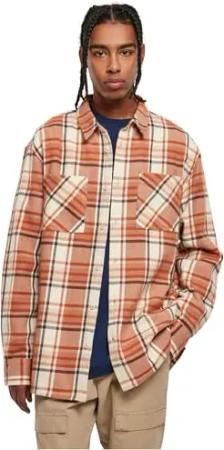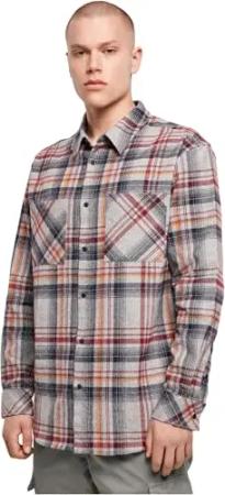 Herren Heavy Curved Oversized Checked Shirt Hemd, Grey/red, M