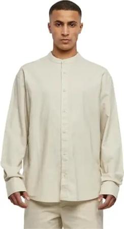 Herren Hemd Cotton Linen Stand Up Collar Shirt softseagrass M