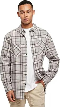 Herren Long Oversized Grey Check Shirt Grey/Black, L