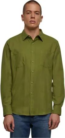 Solid Flanell Shirt Männer Langarmhemd Oliv S 100% Baumwolle Basics