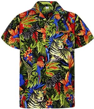 Funky Hawaii-Hemd, Herren, Kurzarm, Jungle, Schwarz, M