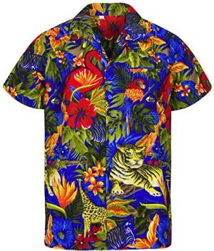 Funky Hawaii-Hemd, Herren, Kurzarm, Jungle, Blau, M