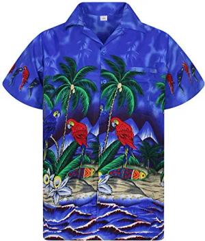 Funky Hawaii-Hemd, Herren, Kurzarm, Parrot, Blau, S