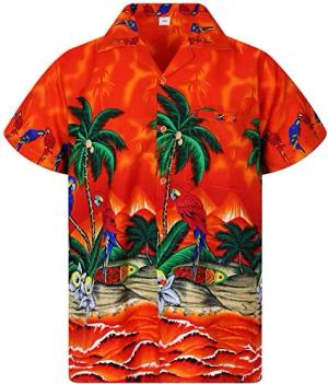 Funky Hawaii-Hemd, Herren, Kurzarm, Parrot, Orange, S