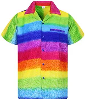 Funky Hawaii-Hemd, Herren, Kurzarm, Rainbow-Horizontal, Mehrfarbig, S