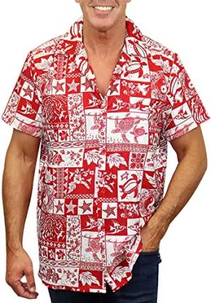 Funky Hawaii-Hemd, Herren, Kurzarm, Jungle, Rot, S