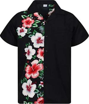 Funky Hawaiihemd, Kurzarm, Blanc, schwarz, L