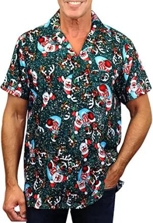 O.H. Funky Hawaiihemd, Christmas Hats, dunkelgrün, XL