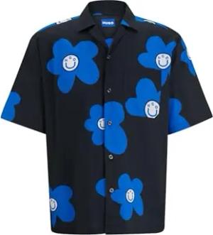 HUGO Herren Eligino Oversized Hemd aus Baumwoll-Popeline mit Blumen-Print Schwarz001 M