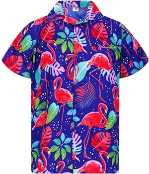 Funky Hawaii-Hemd, Herren, Kurzarm, Funky-Flamingos, Blau, S