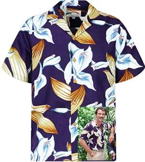 Original Hawaiihemd, Magnum, Kurzarm, Tom Selleck Print, Calla Lily, Violett, L