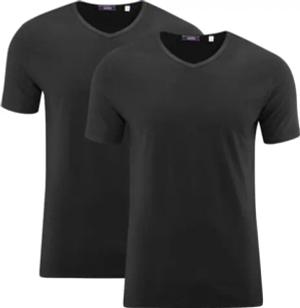 Dean | T-Shirt, 2er-Pack - Bio-Baumwolle, Single Jersey, V-Ausschnitt, Einsatz als Unterhemd, Doppelnahtsaum (, Black)